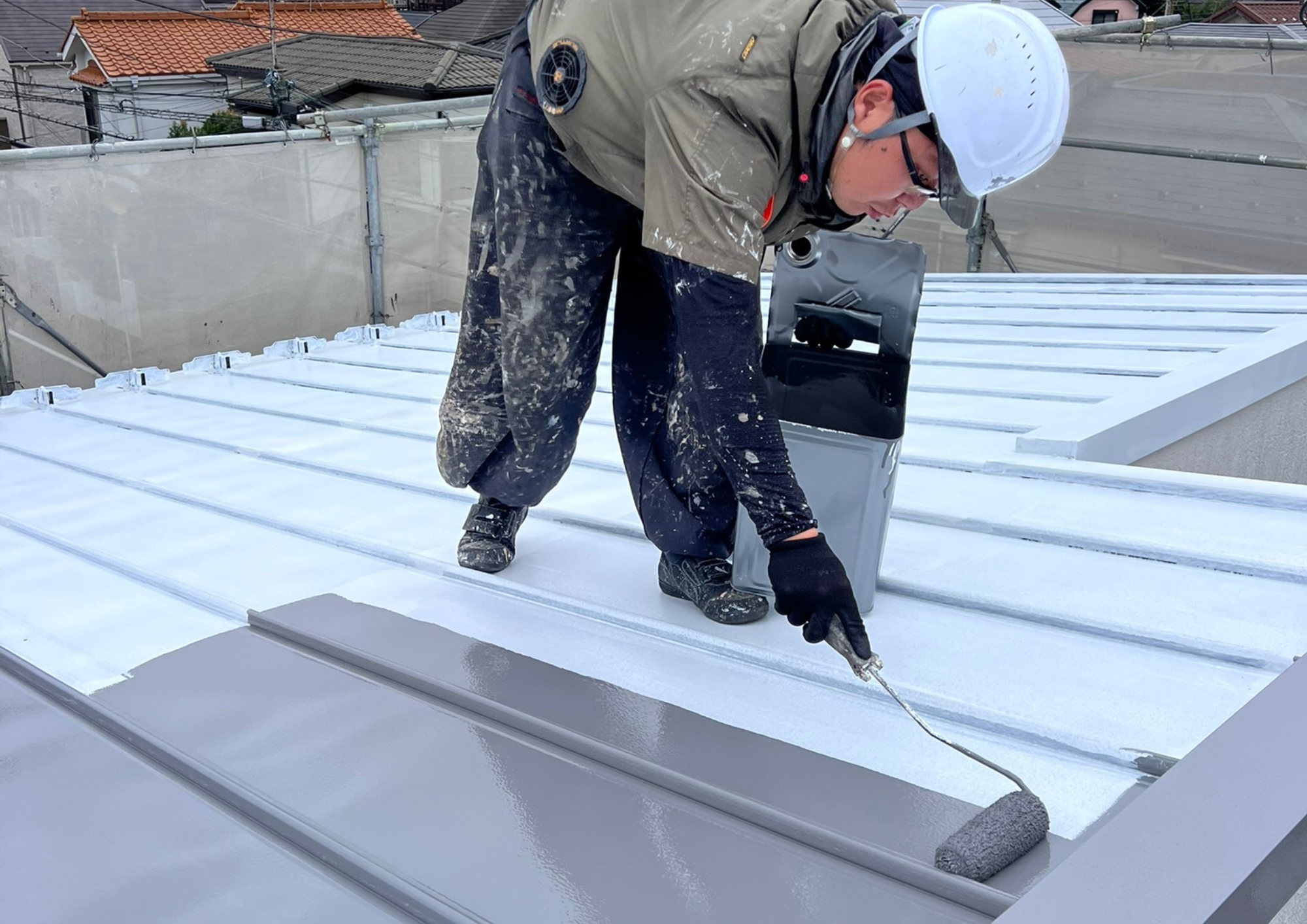 高圧洗浄では、屋根についてしまったコケやカビ、汚れ、前回塗装の塗膜等の不純物などを取り除きます。そうすることで、塗装面が剥がれにくくなります。